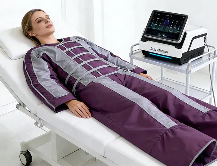 Pressotherapy machine is the “ultimate finisher” in body contouring. It is rarely used alone in high-end clinics because it excels at cleaning up what other technologies break down.